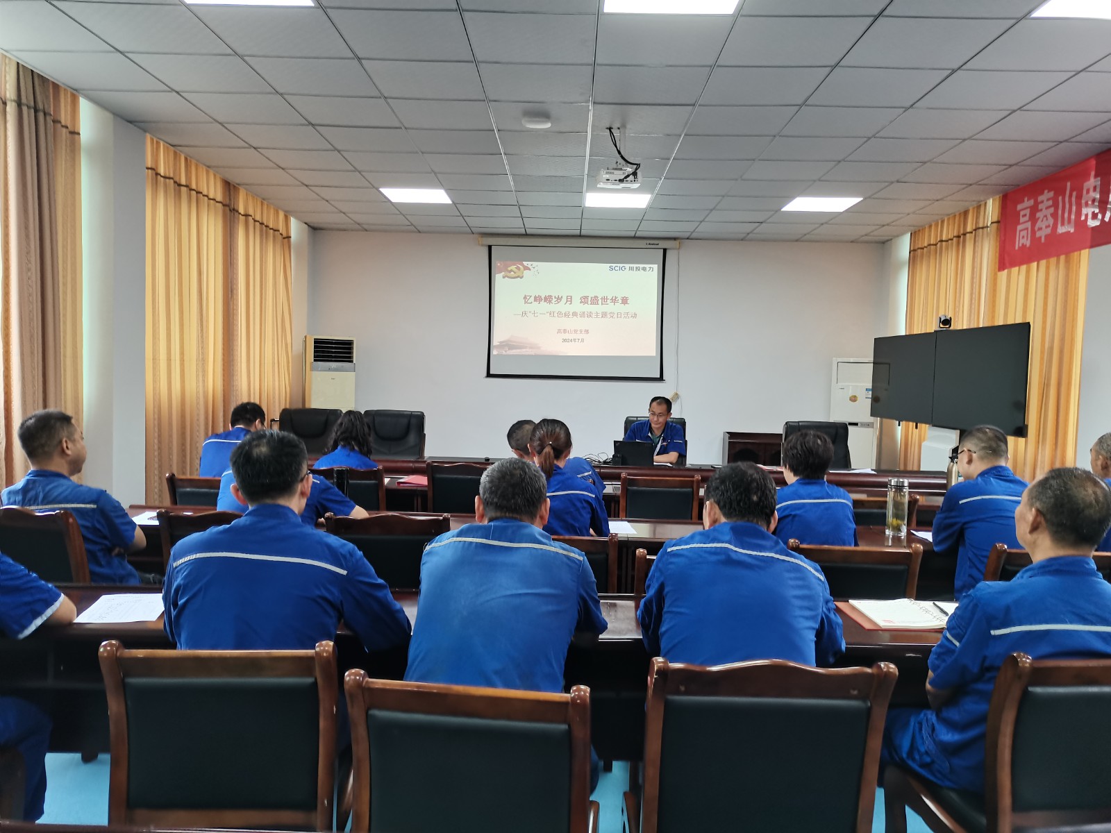 7月10日上午,高奉山電廠會議室氣氛熱烈,為慶祝中國共產黨建黨103周年,歌頌黨的豐功偉績,激發全體黨員愛黨愛國、敬業奉獻的熱情,電廠黨支部組織開展了“憶崢嶸歲月,頌盛世華章”紅色經典誦讀主題黨日活動。