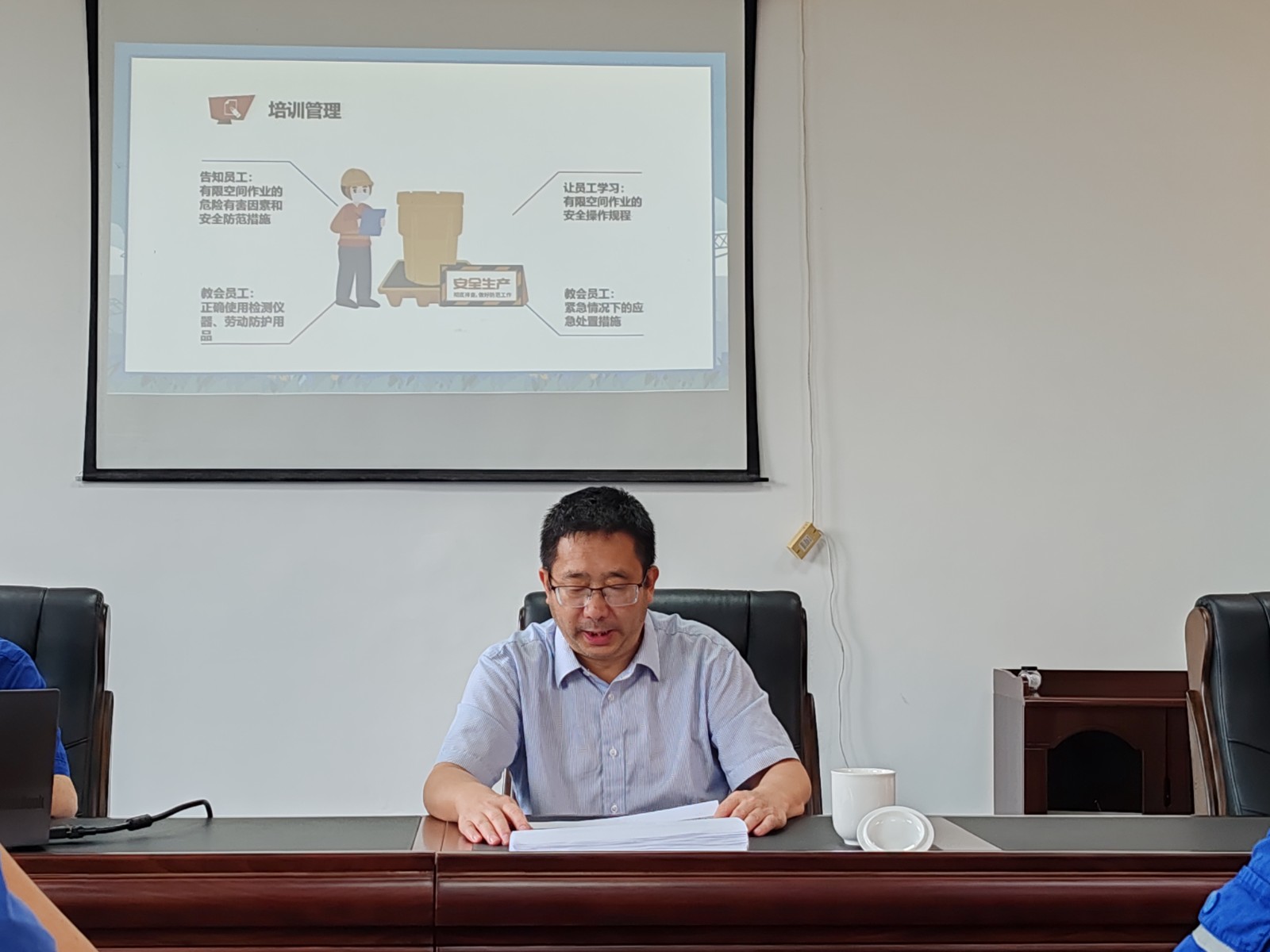 培訓現場,王偉結合電廠實際情況,重點圍繞有限空間場所和風險辨識、作業安全要點和安全管控、安全防護設備和應急處置等內容進行全麵係統講解,以案說法,讓參訓人員深刻認識到加強有限空間作業管理的重要性,樹牢“切忌盲目施救”的應急救援意識,為最大限度減少有限空間作業事故發生夯實理論基礎。