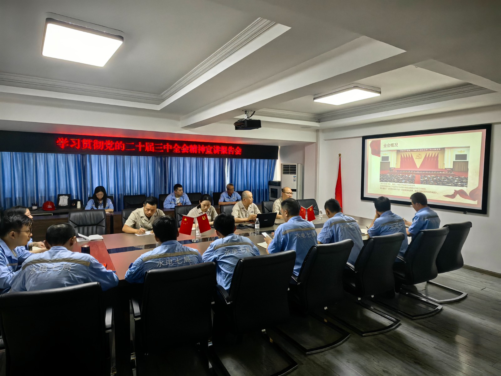 為深入學習宣傳貫徹黨的二十屆三中全會精神,推動全會精神在攀水電公司落地落實,9月13日,攀水電公司黨總支副書記、總經理吳巍嶼在聯係指導黨支部及分管部門宣講了黨的二十屆三中全會精神。公司計劃合同部及水電七局項目部全體黨員幹部共計17人參加學習。