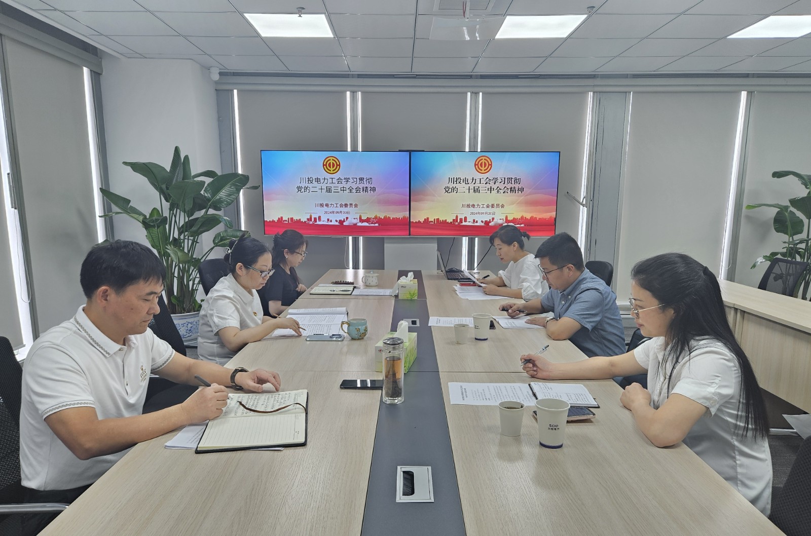 按公司黨委統籌安排和相關要求,為深入學習宣傳貫徹黨的二十屆三中全會精神,推動全會精神落地落實,9月20日,川投電力工會召開會議,專題傳達學習黨的二十屆三中全會精神。會議由公司黨委副書記、工會主席楊鑫主持,工會委員及相關成員參加學習。