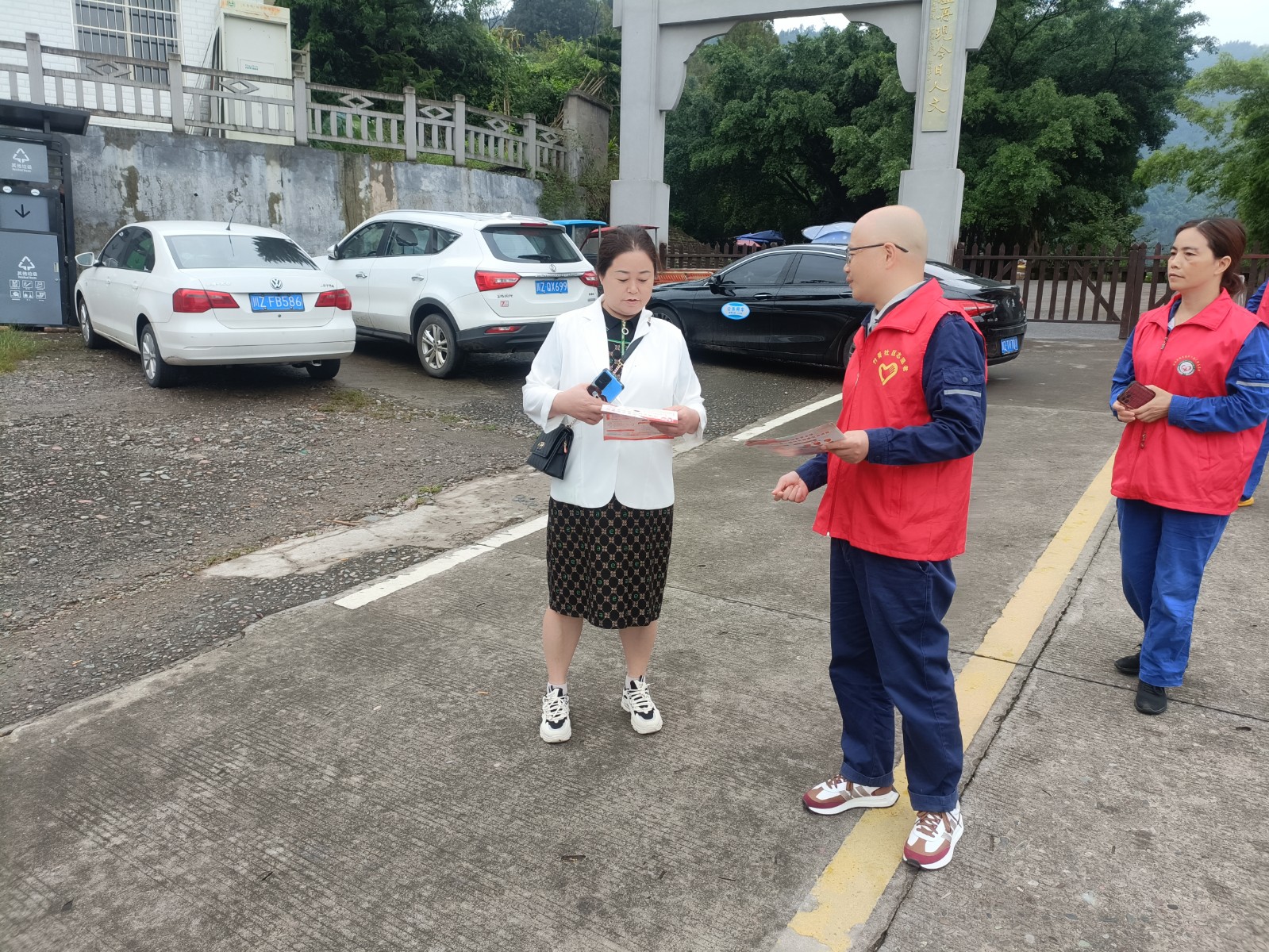 在槽漁灘風景區入口,麵對到來的遊客,支部黨員張華耐心地為遊客提供景區景點、遊覽路線、交jiao通tong信xin息xi等deng谘zi詢xun服fu務wu,確que保bao遊you客ke能neng夠gou順shun利li遊you覽lan景jing區qu。黨dang員yuan鄭zheng健jian在zai景jing區qu停ting車che場chang區qu域yu,協xie助zhu景jing區qu工gong作zuo人ren員yuan維wei持chi交jiao通tong秩zhi序xu,引yin導dao遊you客ke有you序xu停ting車che,確que保bao遊you客ke安an全quan與yu景jing區qu秩zhi序xu平ping穩wen。黨dang員yuan何he曉紅、發展對象楊傑主動向遊客普及國家安全與森林防火知識,引導廣大遊客自覺維護國家安全,自覺遵守森林防火規定。