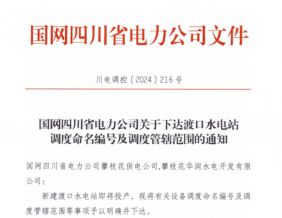 銀江水電站投產發電在即,因“銀江”二字已被銀江變電站占用,攀水電公司動員全體員工集思廣益,挑選符合規定又有寓意的調度名。10月8日,在國網四川省電力公司和川投能源的指導幫助下,經過積極對接、多方協調,攀水電公司成功取得國網四川省電力公司對銀江水電站和送出線路的調度命名,銀江水電站的調度名為“渡口水電站”,銀江水電站220kV送出線路調度名為“220kV渡銀線”。