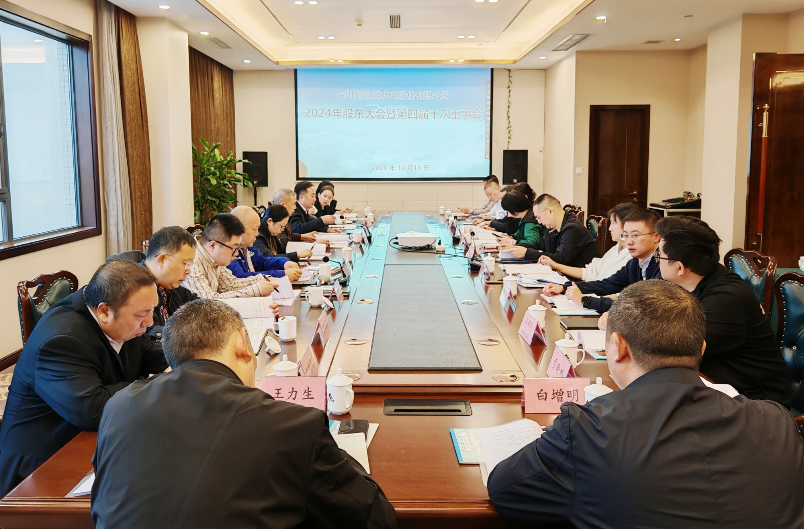 10月16日,槽漁灘公司2024年度股東大會暨第四屆第十次董事會在洪雅召開。各股東單位和個人股代表、公司董事出席會議,公司監事、經營班子成員、相關部門負責人列席會議。