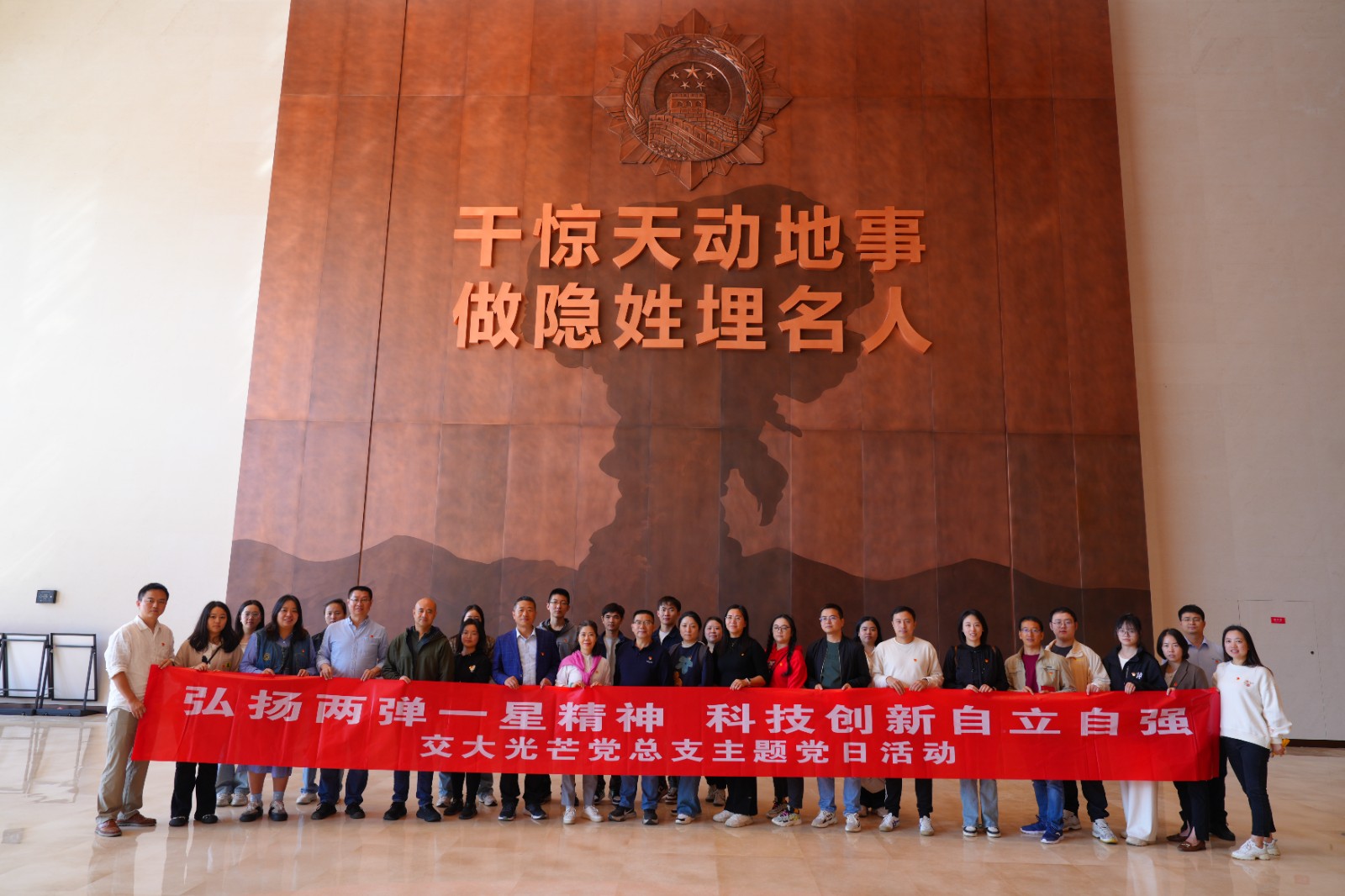 走進兩彈城博物館,在23位獲得“兩彈一星”功勳獎章的科學家塑像前,黨總支副書記汪誌橋為全體黨員講授微黨課,對“熱愛祖國、無私奉獻、自力更生、艱苦奮鬥、大力協同、勇於登攀”的“兩彈一星”精神進行了闡釋,並宣講習近平總書記對廣大科技工作者弘揚“兩彈一星”精神的重要指示。他強調,科技創新是交大光芒擔負的神聖使命,我們在此親身感受那段波瀾壯闊、激情燃燒的歲月,就是要弘揚偉大的“兩彈一星”精神,敢啃硬骨頭,爭當排頭兵,打好科技創新自立自強攻堅戰。