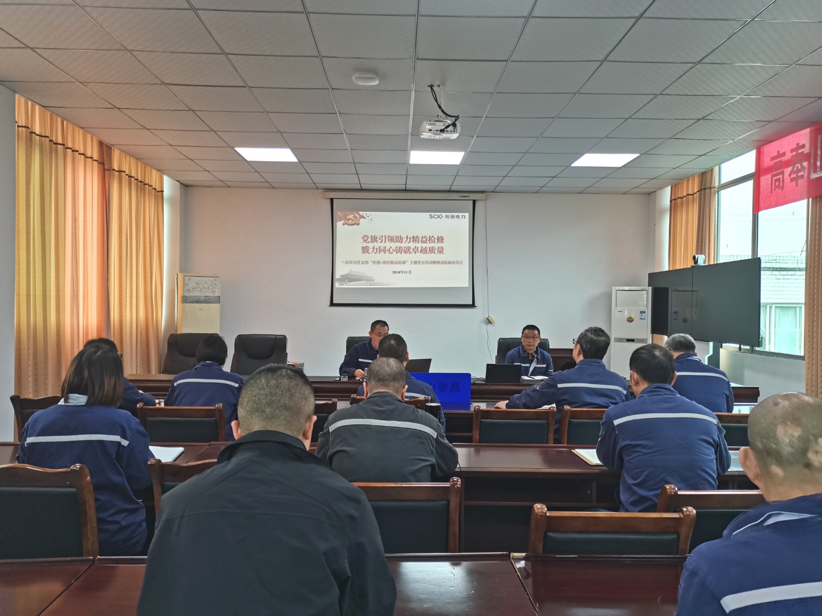 為確保檢修安全、提升檢修質量、抓好檢修進度,近日,川投電力黨委高奉山黨支部將黨建融入重點工作,開展“黨建+精益檢修”主題黨日活動,拉開了“1+2+3+4”黨建引領融入檢修工作的序幕。高奉山黨支部書記、副廠長王橋主持會議並講話,支部黨員和員工代表參加。