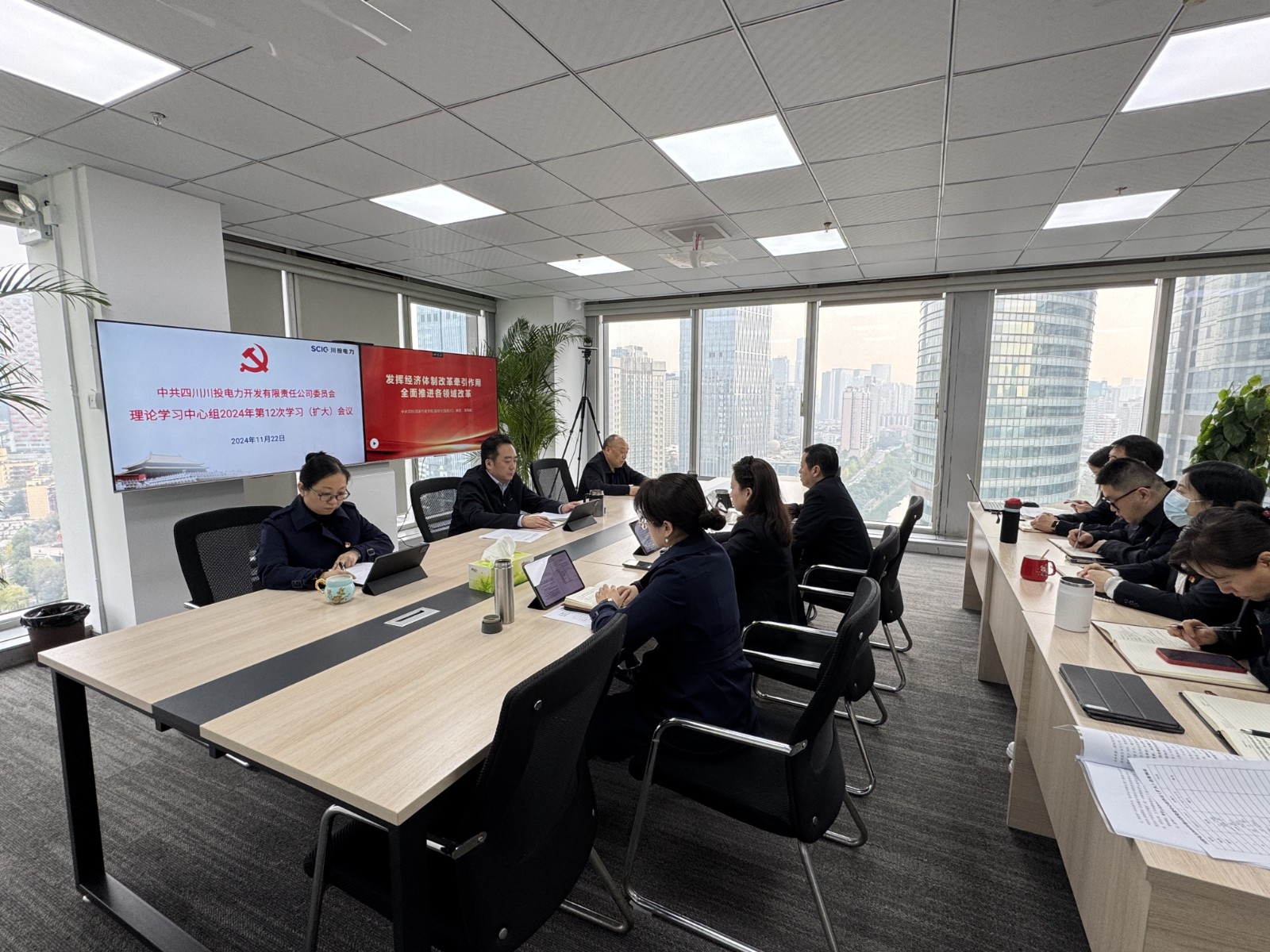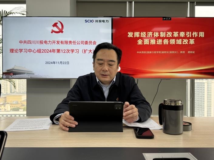11月22日,川投電力黨委理論學習中心組召開2024年第12次學習(擴大)會議。公司黨委書記、董事長楊濤主持會議並結合工作實際提出工作要求。