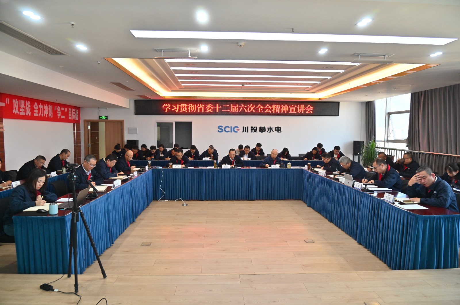 為深入學習貫徹省委十二屆六次全會精神,推動全會精神在攀水電公司和銀江水電站落地落實,11月24日上午,川投能源副總經理,攀水電公司黨總支書記、董事長徐孝剛開展了省委十二屆六次全會精神宣講。會議以“現場+視頻”形式召開,公司和水電五局項目部全體黨員、幹部職工代表共計50餘人參加學習。