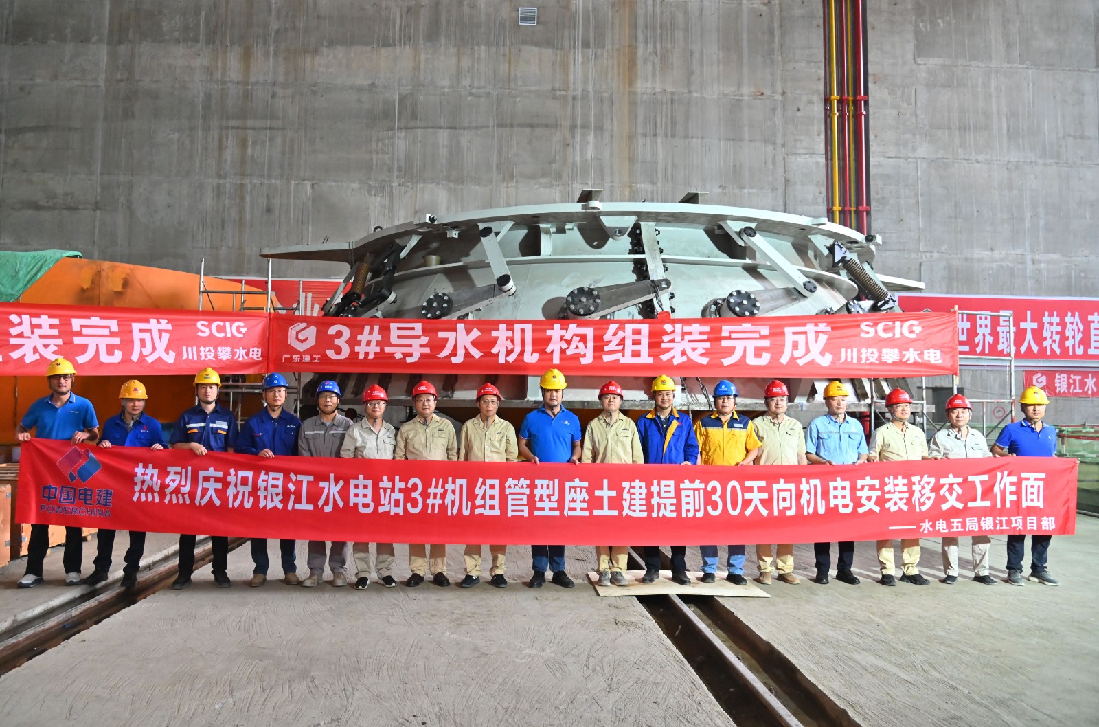 2025年一季度,銀江水電站工程建設和生產運行再創佳績。3月31日,銀江水電站建設現場傳來振奮人心的消息,3號機組管形座二期混凝土澆築完成,較原計劃提前一個月完工,順利實現向機電專業移交工作麵,為一季度“開門紅”目標再添濃墨重彩的一筆,為全年高質量推進工程建設注入強勁動力。