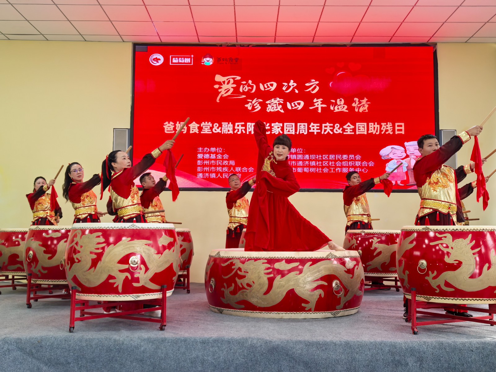 5月16日,在彭州市通濟鎮圓通壩社區“爸媽食堂”4周年慶暨全國助殘日活動現場,天彭電力理論宣講隊隊員以一場氣勢恢宏的非遺大鼓《盛世凱歌》拉開慶典帷幕,不僅展現了國企參與基層治理的創新實踐,更奏響了文化惠民與鄉村振興的協奏曲。