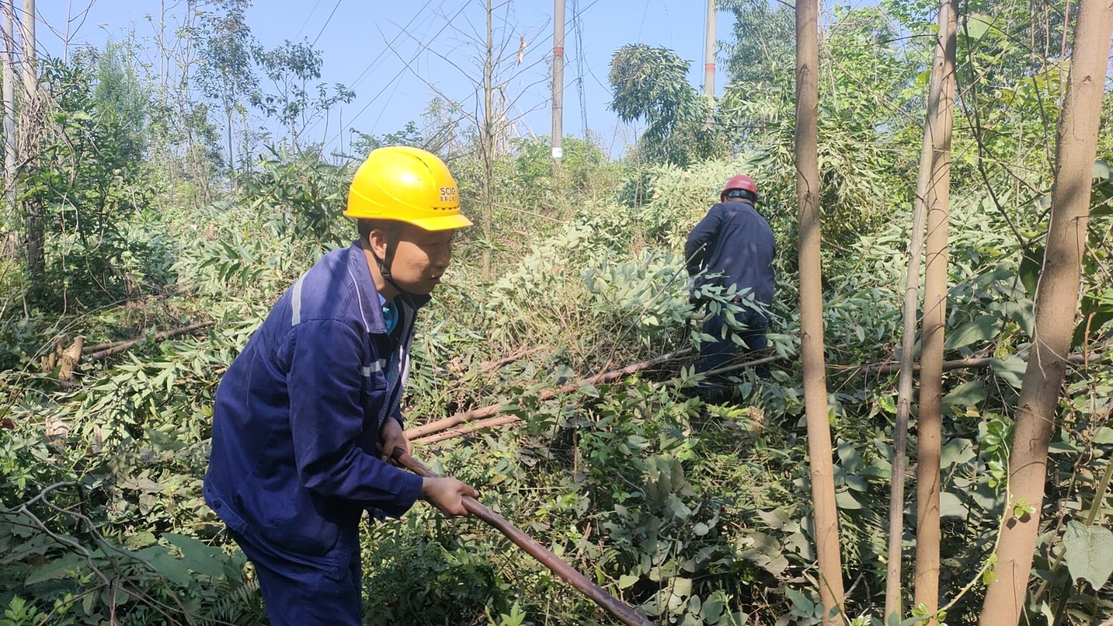 高奉山電廠位於四川盆地西南邊緣的洪雅縣,這裏年降雨量1385毫米,電廠的送出線路有80%跨越或臨近林區。97基杆塔如星辰般散落在3個鄉鎮、12個村落構成的30多公裏線路上。位置最為深入的鐵塔,電廠維護人員從早上8時出發上山,要一直到下午才能到達,他們徒步前行,一步步踩出“保電長征”的印記。