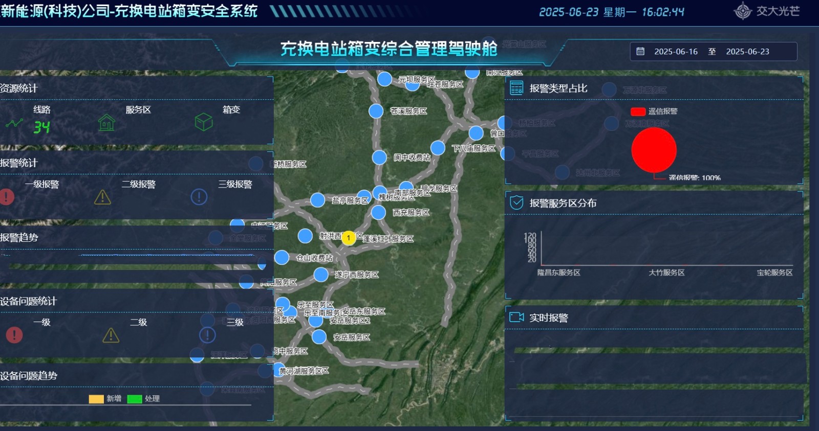 近日,交大光芒新能源充換電站箱變“數智化”解決方案在四川成渝高速公路股份有限公司所屬蜀道新能源(科技)公司實施的箱變智能化改造項目中成功落地,完成100餘台新能源充換電站箱變安全係統升級改造並投入運行,得到用戶認可。