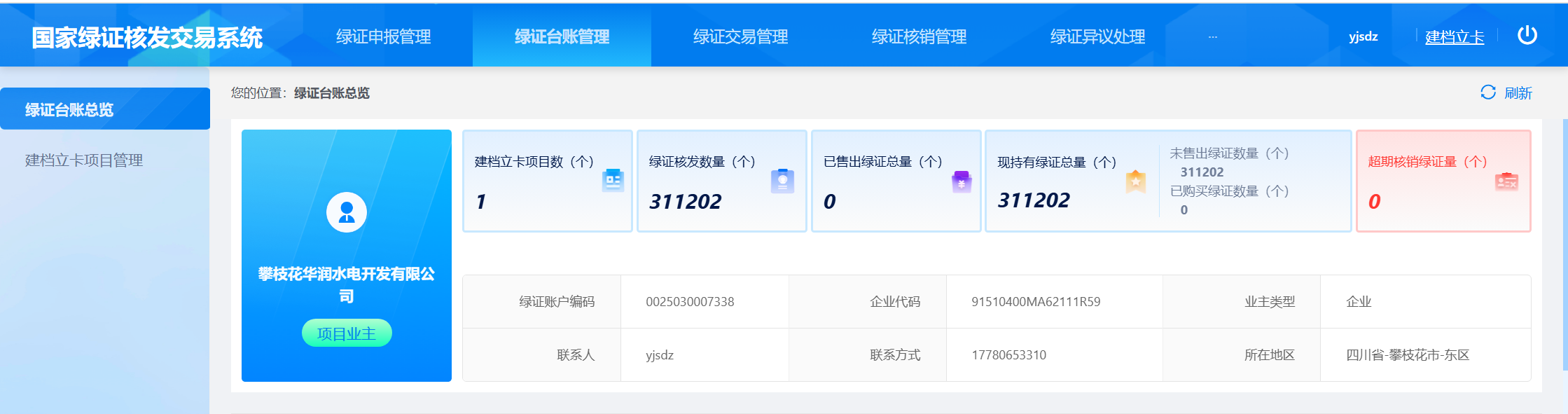 近日,國家能源局國家綠證核發交易係統公示,川投能源攀水電公司首次取得311202個綠色電力證書,實現了綠證零的突破,標誌著銀江水電站生產電能的環境價值獲得權威認可。