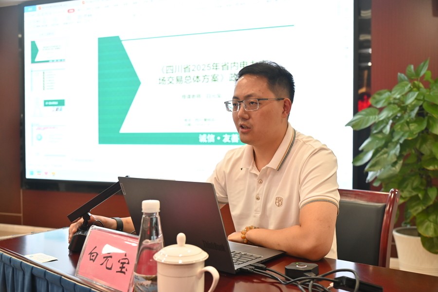 此次培訓邀請到四川能投綜合能源有限責任公司電力交易分公司副總經理白元寶,圍繞四川省電力銷售政策、交易實施方案等方麵內容進行詳細講授。白元寶首先對《四川省2025年省內電力市場交易總體方案》進行政策解讀;再從“水火風光同台競爭、分時簽約銜現貨、零售市場防風險”核心變化點、對市場成員要求、電力批發交易、電力零售交易、價格及結算機製、市場銜接事項等方麵進行講授;最後針對發電企業的電力交易方案,從中長期及現貨交易,圍繞規則要求、市場形勢、邊界條件、交易組織模式等方麵進行詳細講解,並對現貨市場下的中長期交易、增強抗市場風險能力、構建交易組織體係、現貨市場的影響等重點、難點的核心事項進行了分析和講授。