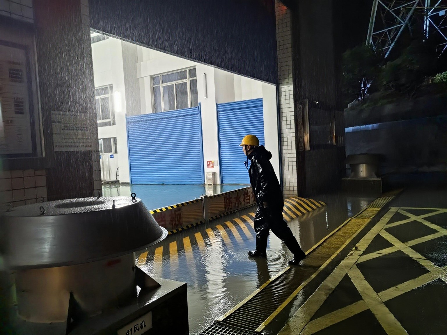 10分鍾內完成集結並冒雨展開全麵排查,及時發現廠外溝渠洪水倒灌險情,值守人員毫不猶豫地踏入積水,在關鍵區域架設擋水板、加固排水係統,經過連續4小時的艱苦奮戰,最終成功守護了主廠房、副廠房等核心區域的安全。“雨再大,也要保住發電設備!”——這擲地有聲的誓言,正是他們用鋼鐵意誌守護萬家燈火的最好詮釋。