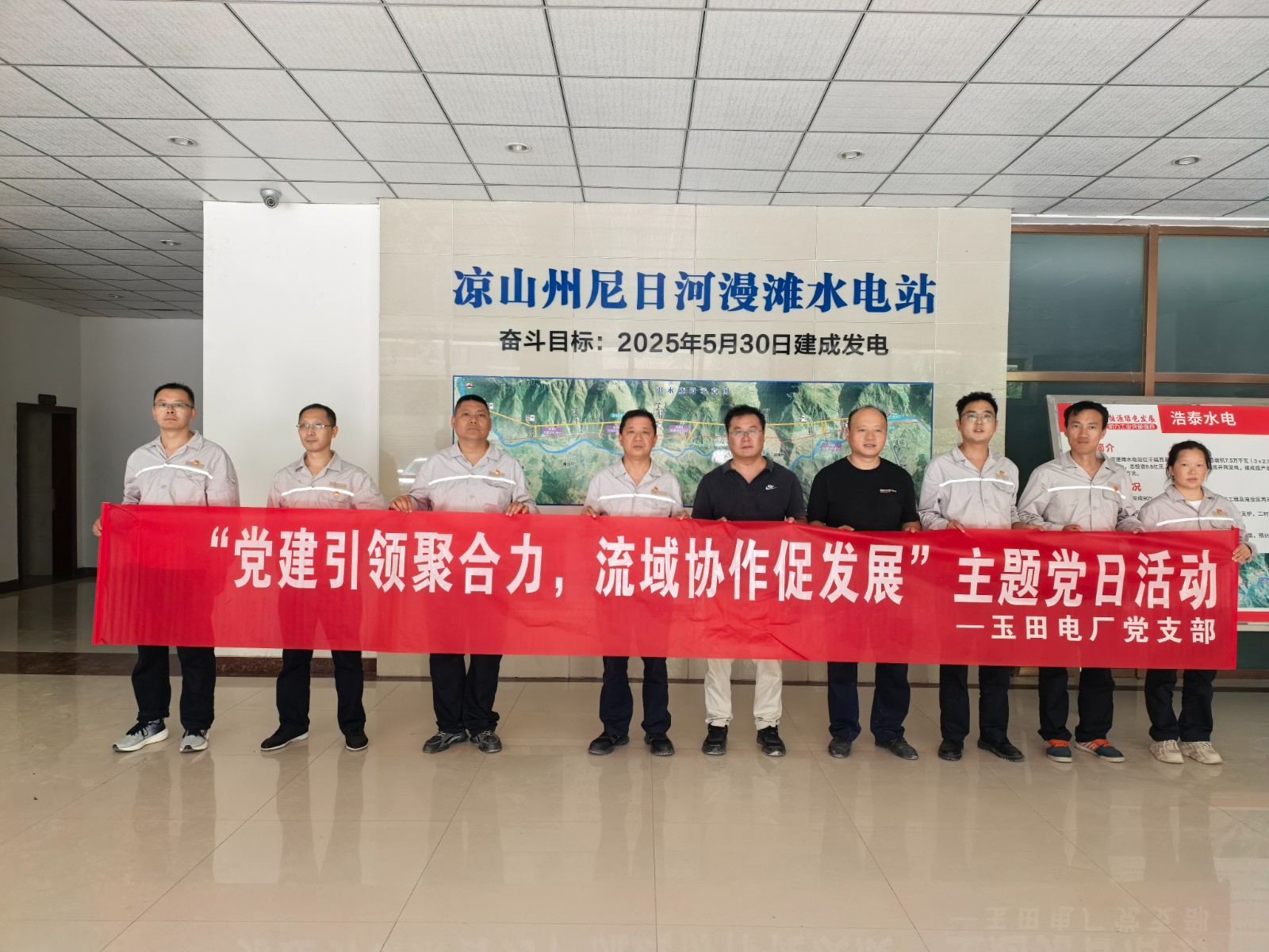為wei推tui動dong黨dang建jian與yu生sheng產chan經jing營ying深shen度du融rong合he,通tong過guo黨dang建jian引yin領ling企qi地di共gong建jian方fang式shi,強qiang化hua上shang下xia遊you水shui電dian站zhan協xie同tong效xiao能neng,近jin日ri,玉yu田tian黨dang支zhi部bu組zu織zhi黨dang員yuan幹gan部bu及ji入ru黨dang積ji極ji分fen子zi,赴fu尼ni日ri河he流liu域yu上shang遊you越yue西xi縣xian浩hao泰tai水shui電dian開kai發fa有you限xian公gong司si所suo屬shu在zai建jian漫man灘tan水shui電dian站zhan,開kai展zhan“黨建引領聚合力,流域協作促發展”企地共建主題黨日活動。