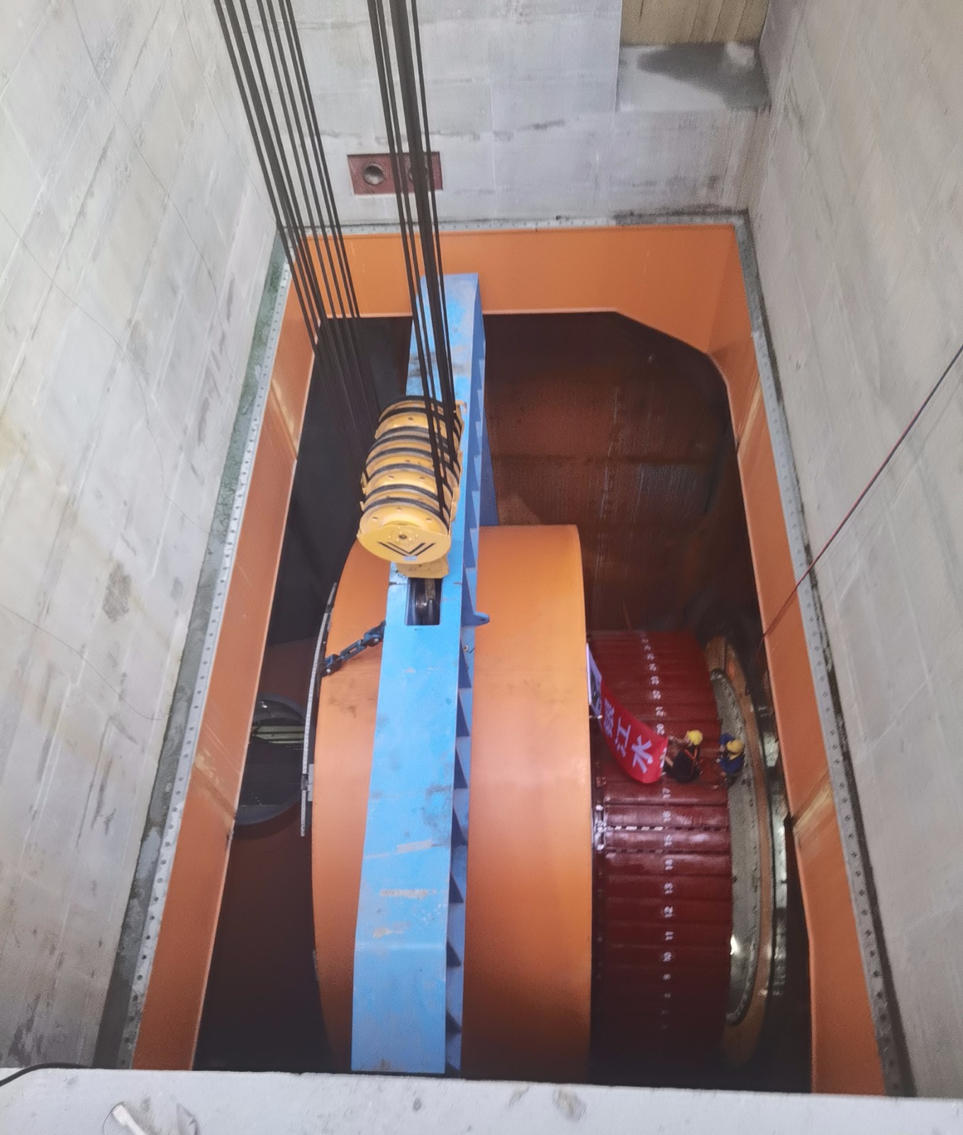 轉子與定子均是水輪發電機組核心部件,其裝配精度要求極高,本次吊裝過程堪稱機組安裝中技術最複雜、風險最高的環節之一;轉子總重約230.5噸,最大安裝直徑達8473.2毫米,由轉子支架、磁極、製動環及轉子引線等部件精密組裝而成;定子裝配則包括機座、內支撐、鐵芯、線棒等,總重190.5噸,機座最大外徑達10400毫米,總起吊重量高達約228噸;為確保這兩個大件的吊裝工作萬無一失,攀水電公司協同參建各方提前周密部署,對橋機製動係統、吊具及轉子、定子本體狀態開展全維度細致檢查,同步落實現場安全技術交底,完成起吊設備調試、操作流程演練等準備工作,夯實安全基礎。