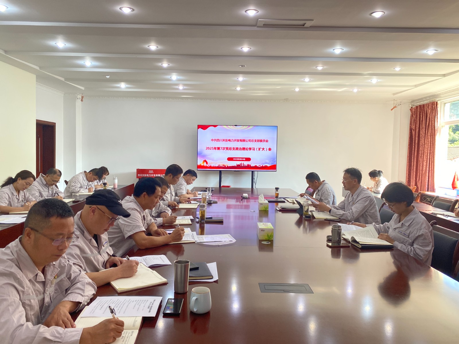 為深入貫徹習近平文化思想,進一步凝聚推動企業高質量發展的強大精神力量,近日,天彭電力黨總支召開2025年第7次黨總支政治理論學習(擴大)會議,集中研讀《習近平文化思想學習綱要》,並圍繞“堅持‘兩個結合’,深入踐行習近平文化思想”主題展開深入研討。會議由公司黨總支書記、執行董事、總經理劉紅兵主持,公司領導班子成員、中層幹部、黨員及關鍵崗位人員參會學習。