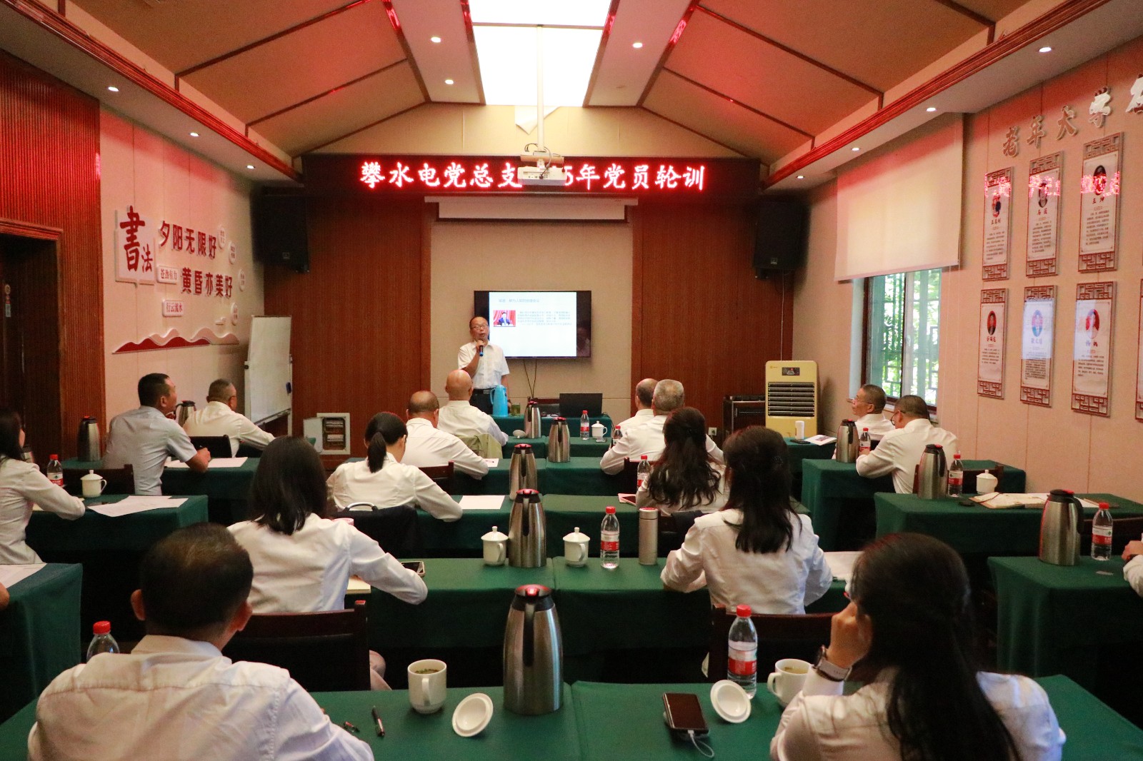 為全麵貫徹習近平新時代中國特色社會主義思想,進一步提升黨員幹部黨性修養和政治理論水平,9月25日至26日,攀水電公司黨總支在會理縣金沙江黨性教育實踐學院開展2025年第一批黨員輪訓,攀水電公司黨總支副書記、總經理吳巍嶼,公司及參建單位聯建支部黨員幹部、發展對象共計20餘人參訓。