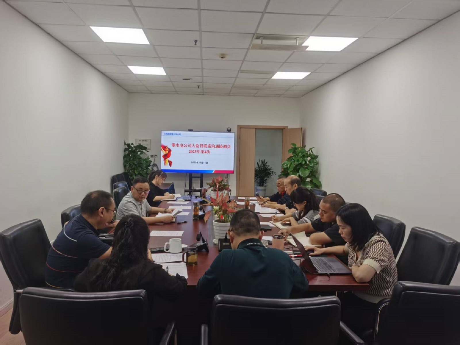 為進一步鞏固擴大深入貫徹中央八項規定精神精神學習教育成果,紮實推進作風建設與監督效能提升,11月11日,攀水電公司召開2025年第4次大監督聯席溝通協調會。會議由公司黨總支委員、紀檢小組長楊銳主持,各部門負責人及支部紀檢委員共12人參加。