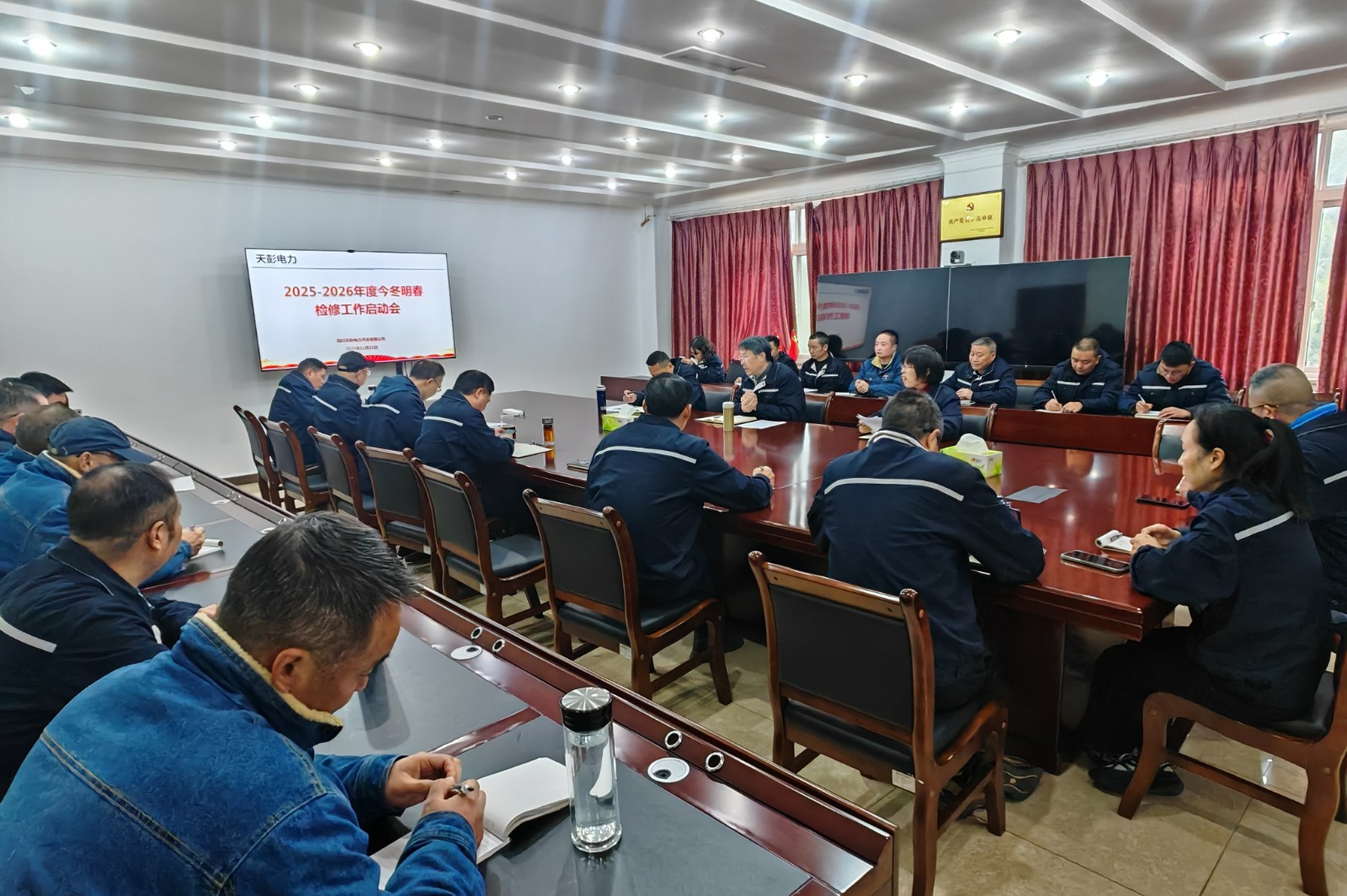 11月21日,天彭電力召開2025-2026年度今冬明春檢修工作啟動會,梳理總結上年檢修維護工作,安排部署今冬明春檢修重點工作,統一思想,凝聚幹勁,形成同頻共振、同向發力的檢修工作局麵。公司領導、中層幹部、安全專責、車間設備管理員及全體檢修維護人員參加會議,會議由公司黨總支書記、董事、總經理劉紅兵主持。