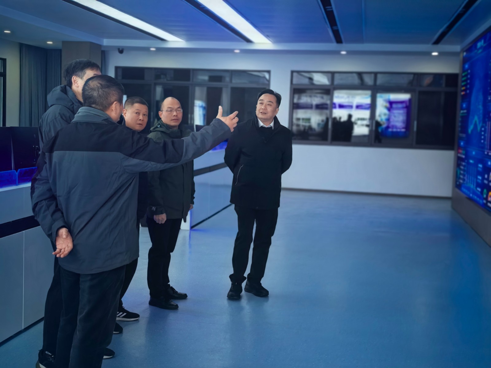 在該集控中心,楊濤一行詳細了解了其建設目的及對電站經營效益和安全管理等方麵的積極影響,並與技術人員進行了深入交流。