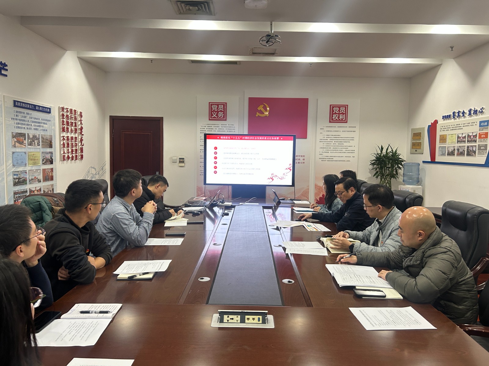 第一黨支部在主題黨日活動中組織全體黨員重點圍繞“十五五”時期經濟社會發展的主要目標和重大任務展開研討,強調要深刻把握中國式現代化的科學內涵,凝心聚力、奮發進取,將學習成果融入科技創新與產品研發實踐,以技術創新服務行業發展新要求。
