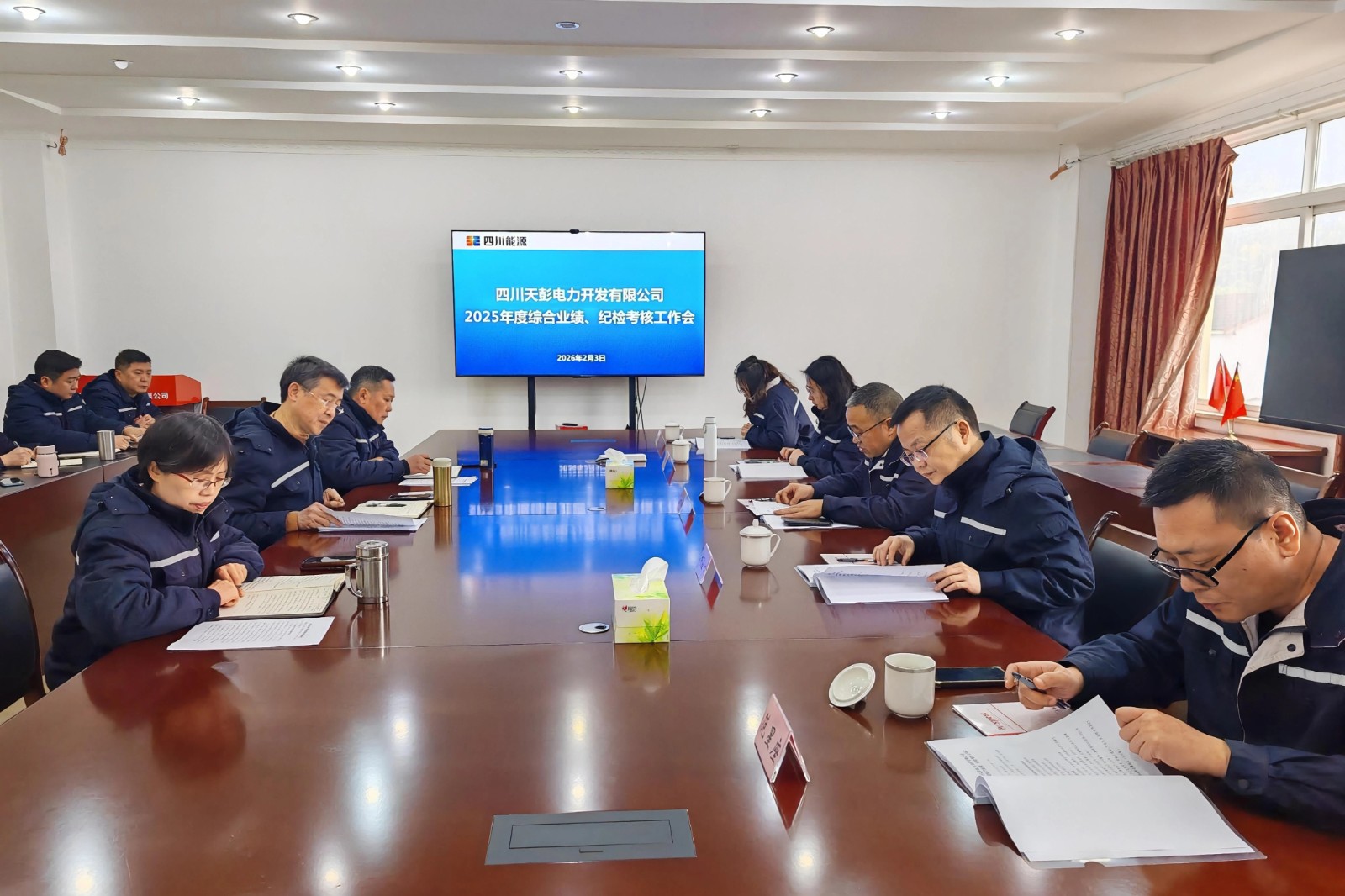 為切實發揮考核“指揮棒”作用,壓實工作責任、推動企業高質量發展,根據川投電力統一工作安排,近日,川投電力副總經理、天彭電力考核組組長陳雲明率考核組一行,赴天彭電力開展2025年度綜合業績及紀檢工作專項考核。考核組成員、天彭電力領導班子全體成員、全體中層幹部及員工代表參加考核會議,會議由川投電力計劃合同部副經理劉應心主持。