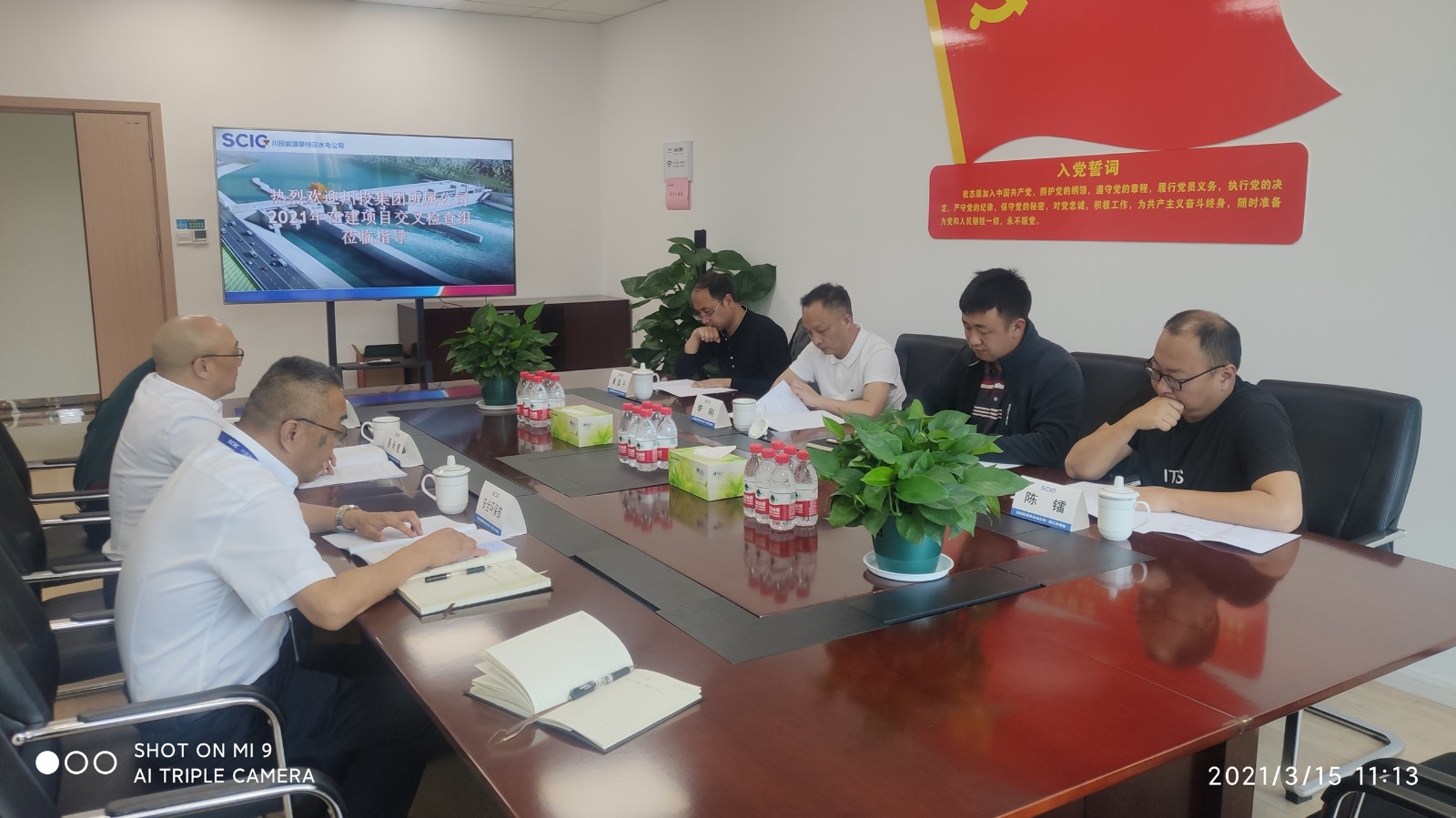3月15日,川投集團所屬公司2021年在建項目交叉檢查組到川投能源攀水電公司銀江水電站檢查工程建設安全環保工作。攀水電公司黨總支副書記、總經理蔡承德及各部門負責人陪同檢查。