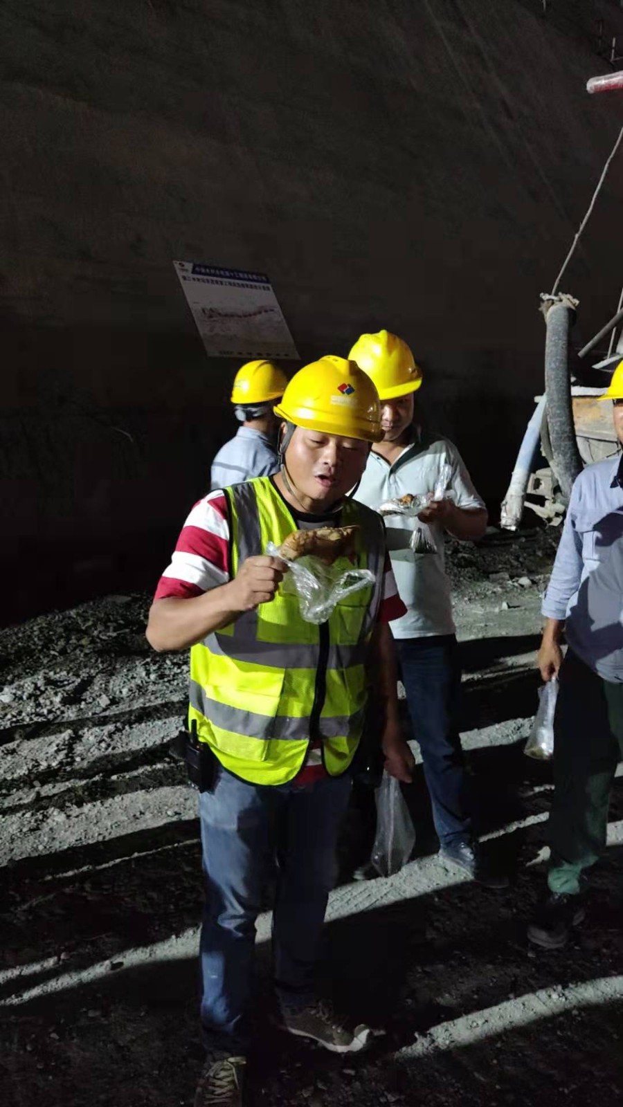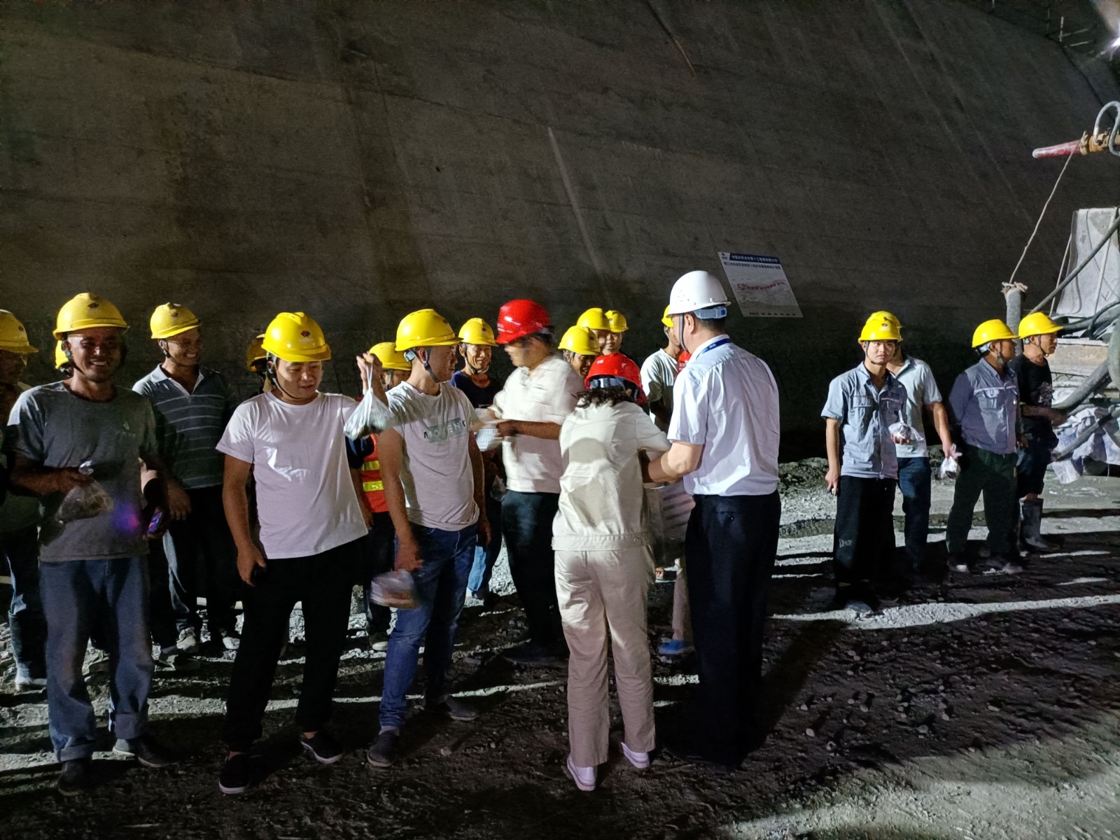 6月13日端午節前夕深夜,公司值班領導、黨總支委員、董事會秘書、工會主席鄧勇,總經理助理唐伽帶領值班人員,對銀江水電站工地現場防洪度汛值班點位及施工現場進行了檢查;公司誌願者服務隊共計10餘人對節日期間堅守在銀江水電站工地夜間施工的一線人員進行了慰問。