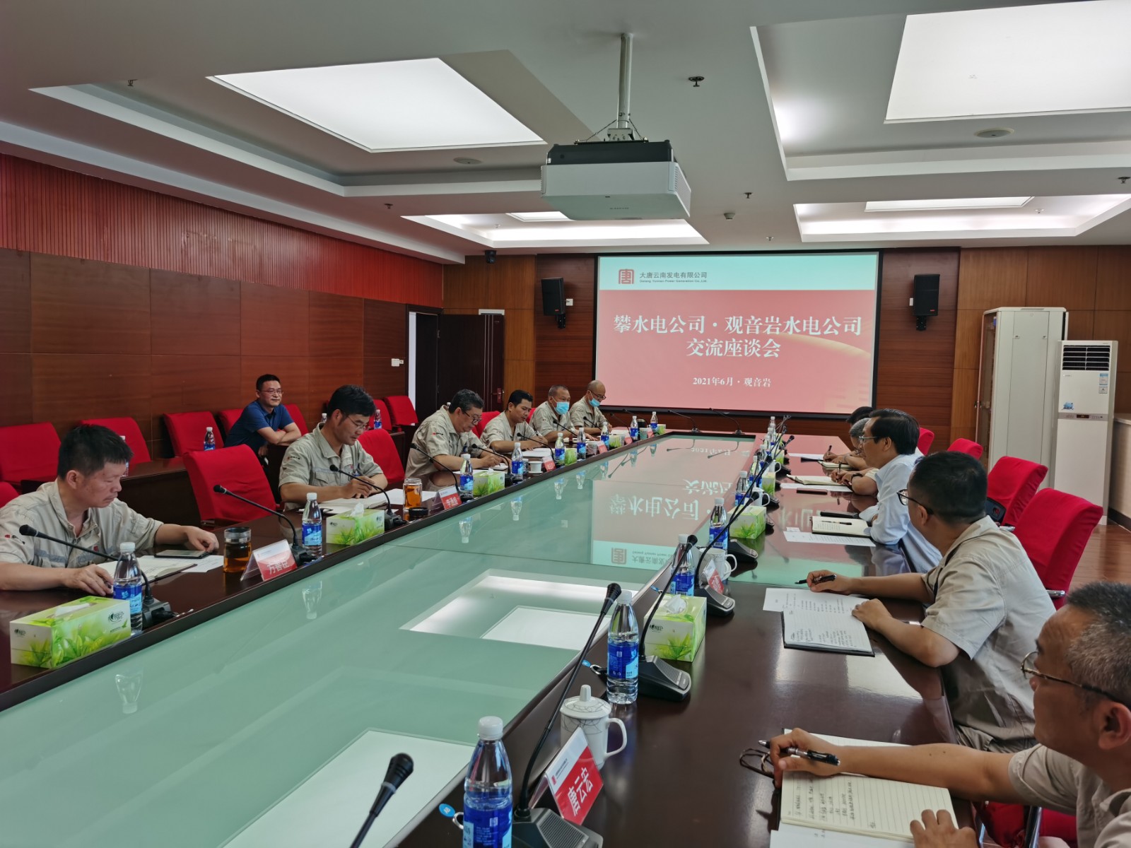 6月9日,川投能源副總經理、公司黨總支書記、董事長徐孝剛,黨總支委員、董事會秘書、工會主席鄧勇及工程管理部、計劃合同部、安全環保部負責人一行6人,本著行業互通、促進合作、管理對標、學習借鑒、交流促進的目的,赴大唐觀音岩水電站開展調研交流。