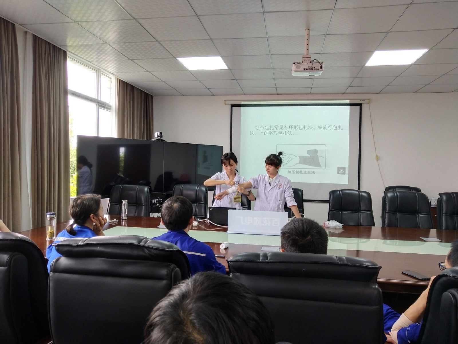 培訓老師結合多年的臨床經驗及電站工作特點,通過播放幻燈片和視頻、展示實物、現場演示等形式,以近年來發生在身邊的鮮活事例,向學員們強調了應急救護“黃金四分鍾”的重要性,隨後逐一講解了胸外按壓、人工呼吸、止血、包紮、骨折固定、傷員搬運等急救理論與施救技巧,並現場實操心肺複蘇、繃帶、sanjiaojinbaozhadengfangfa,jiaohuigongrenyudaoyiwaishanghaishiruhejiudiqucaijinxingchubuyingjichuli,tongshihaiyudianzhanyuangongxianchanghudong,shoubashoudechuanshouxiangguancaozuojineng,yiquebaoxueyuannenggouchongfenzhangwobingzhengqueyunyong。