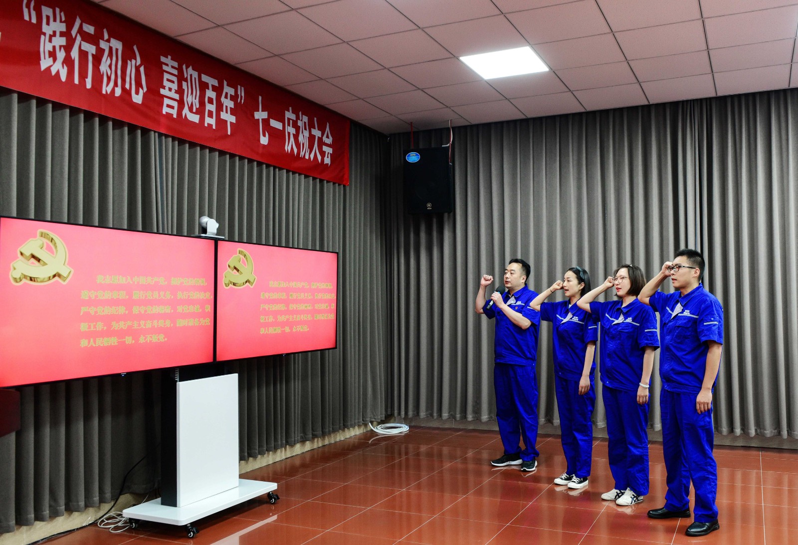 慶祝大會在雄壯的國歌聲中正式開始。大會首先由公司黨委書記、dongshichangyangtaodailingsanmingxindangyuanzaixianhongdedangqixiajinxingzhuangyanderudangxuanshi,canhuidequantidangyuanyehexindangyuanyiqizhongwenlerudangshici。shiketixingwomenyaoshizhongbaochigongchandangyuanbuwangchuxin、牢記使命的優秀品質。