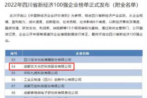 【交大光芒】獲評四川省新經濟100強企業