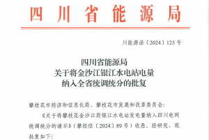 【攀水電公司】銀江水電站成功取得省能源局統調統分批複