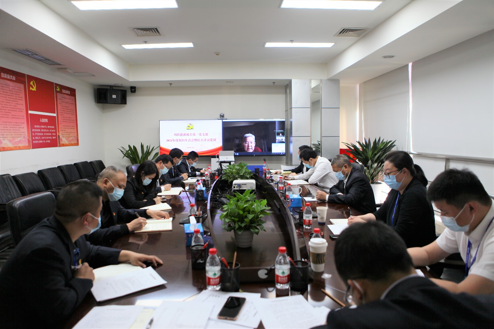 4月21日,川投能源機關第一黨支部召開2021年度組織生活會並認真開展民主評議黨員工作。公司黨委書記、副董事長、總經理楊洪,副總經理熊宇,董事會秘書魯晉川按照“雙重組織生活”要求,以普通黨員身份參加會議,公司黨委委員、紀委書記戴月洪作為督導組組長列席會議。