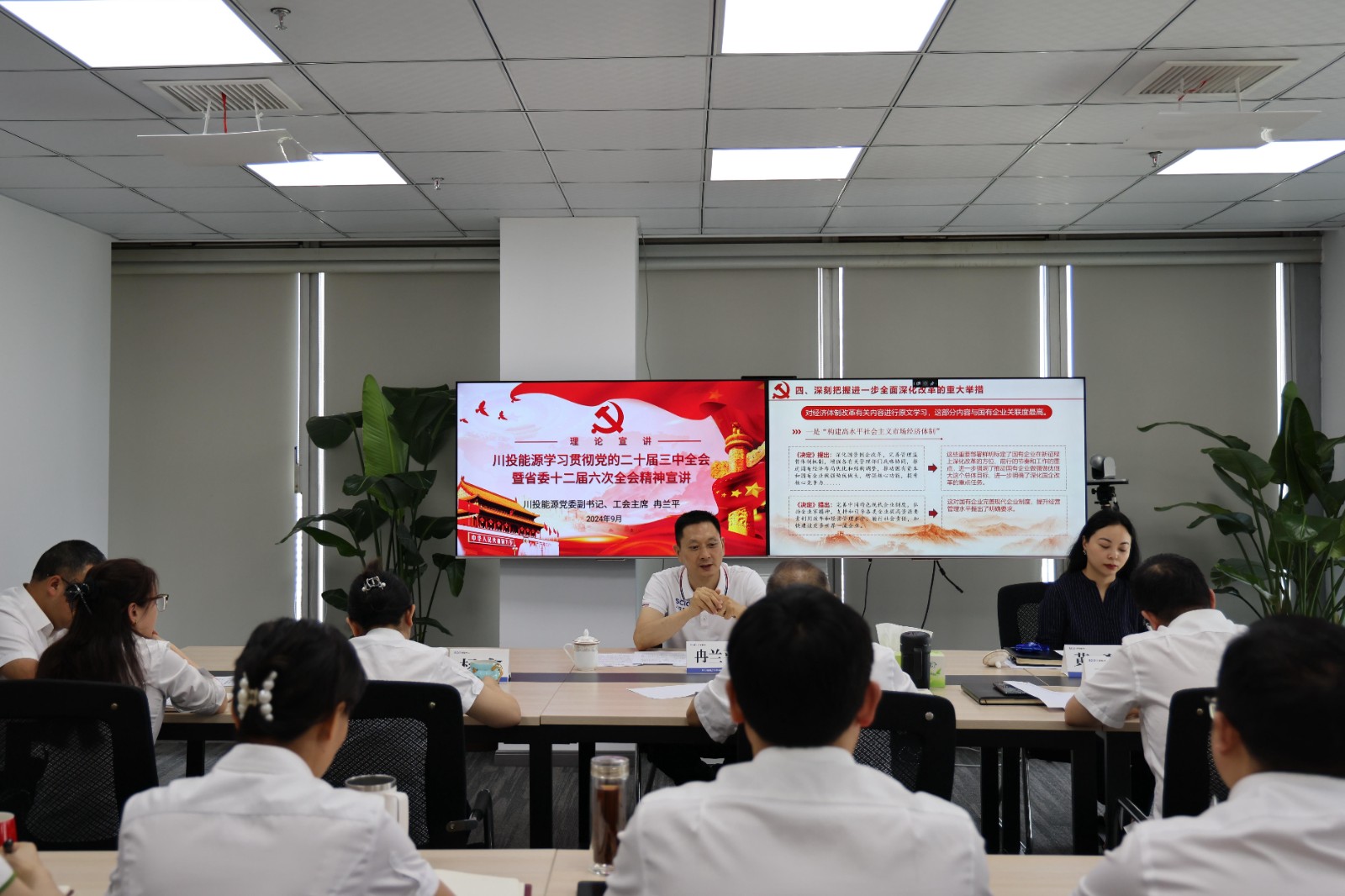 9月26日,川投能源黨委副書記、gonghuizhuxiranlanpingfuchuantoudianligongsizhuantixuanjiangdangdeershijiesanzhongquanhuijingshenheshengweishierjieliuciquanhuijingshen,weijinyibuquanmianshenhuagaigeningxinjuli。chuantoudianlidangweifushuji、總經理蔡承德主持會議。