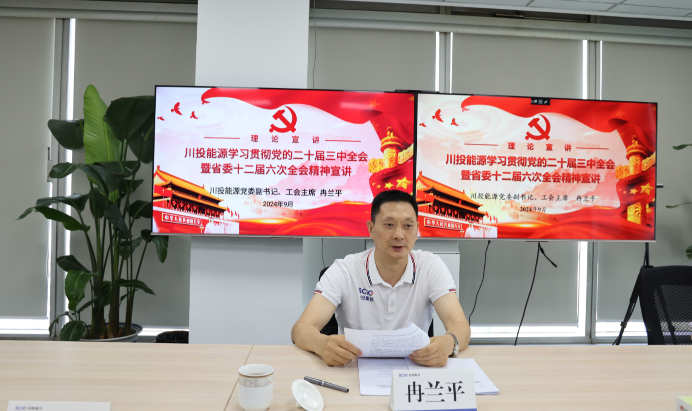 宣講會上,冉蘭平從深刻把握黨的二十屆三中全會的重大意義、深刻把握黨的二十屆三中全會以來黨和國家事業取得的重大成就、全麵深化改革的總體要求等六個方麵,對黨的二十屆三中全會精神進行了係統闡述,重點圍繞深化國資國企改革、因地製宜發展新質生產力等方麵,結合川投電力實際,就推動黨的二十屆三中全會精神落地落實提出要求。