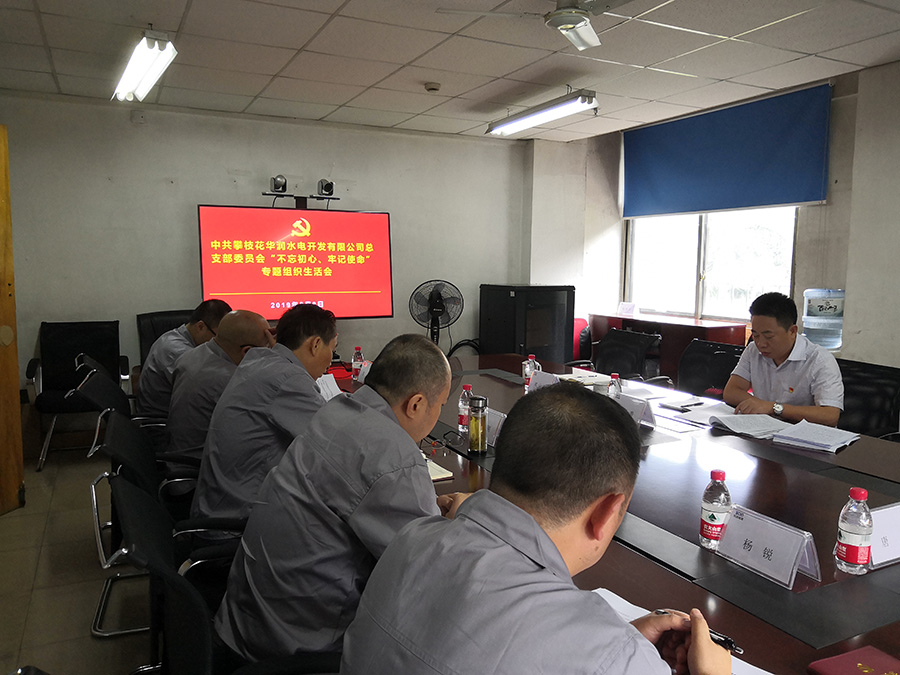 根據中央、省委、省國資委黨委、集團公司黨委和川投能源黨委關於開展“不忘初心、牢記使命”主題教育有關要求,9月8日,攀枝花華潤水電開發有限公司黨總支召開專題組織生活會,川投能源副總經理肖長青到會指導,攀枝花水電公司黨總支書記、董事長徐孝剛主持會議,黨總支班子成員參加會議。
