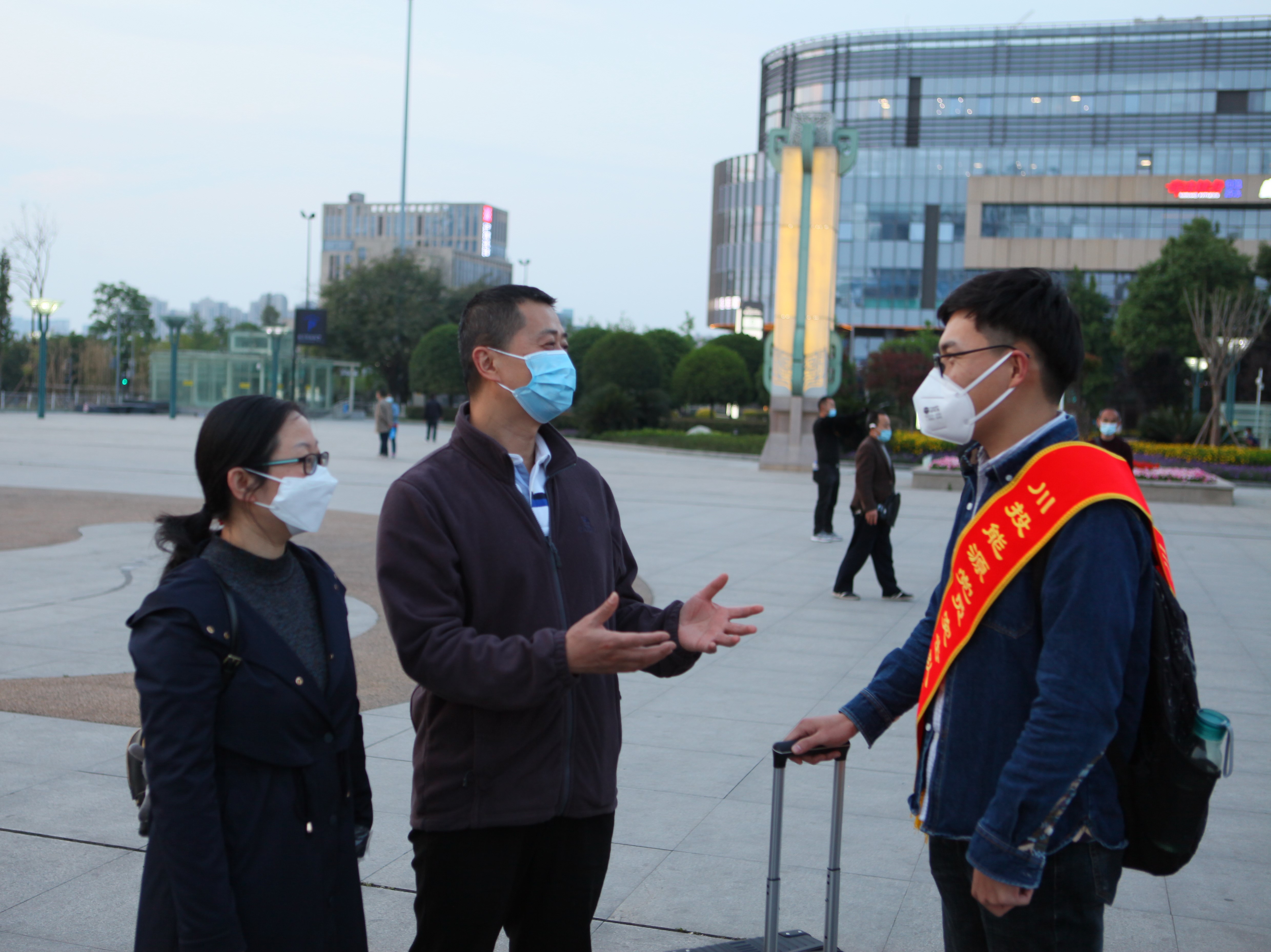 4月25日,川投能源 “最美逆行者”、交大光芒工程突擊隊隊員何啊潭同誌圓滿完成在武漢鐵路局的值守任務,帶著勝利和平安凱旋歸來。川投能源黨委副書記、工會主席楊超龍與黨群工作部主任楊鑫以及交大光芒黨總支委員汪誌橋一道,手捧鮮花,到成都東站迎接川投能源“最美逆行者”回家。