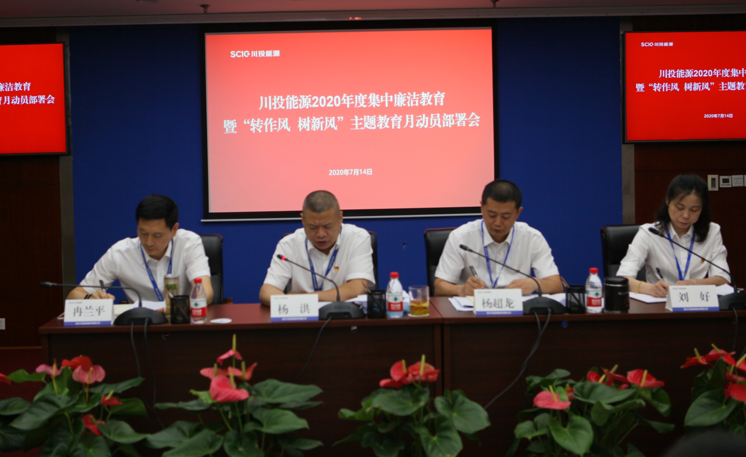 7月14日,川投能源黨委組織召開了2020年度集中廉潔教育暨“轉作風、樹新風”主題教育月動員部署會。公司黨委書記、副董事長、總經理楊洪出席會議並講話,公司黨委副書記、工會主席楊超龍主持會議。