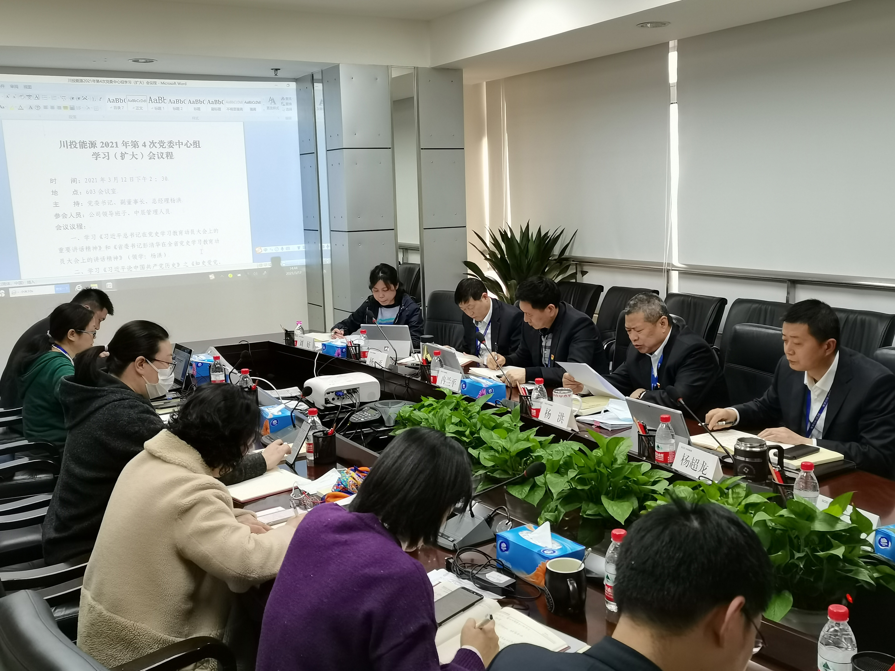 3月12日,川投能源召開黨委理論學習中心組學習(擴大)huiyi,chuandaxijinpingzongshujizaidangshixuexijiaoyudongyuandahuishangdezhongyaojianghuajingshenheshengweishujipengqinghuazaiquanshengdangshixuexijiaoyudongyuandahuishangdejianghuajingshen,bingjizhongxuexi《習近平論中國共產黨曆史》之《知史愛黨、知史愛國》篇章。公司黨委書記、副董事長、總經理楊洪主持會議並帶頭領學。公司領導班子成員、各部門負責人參加學習。