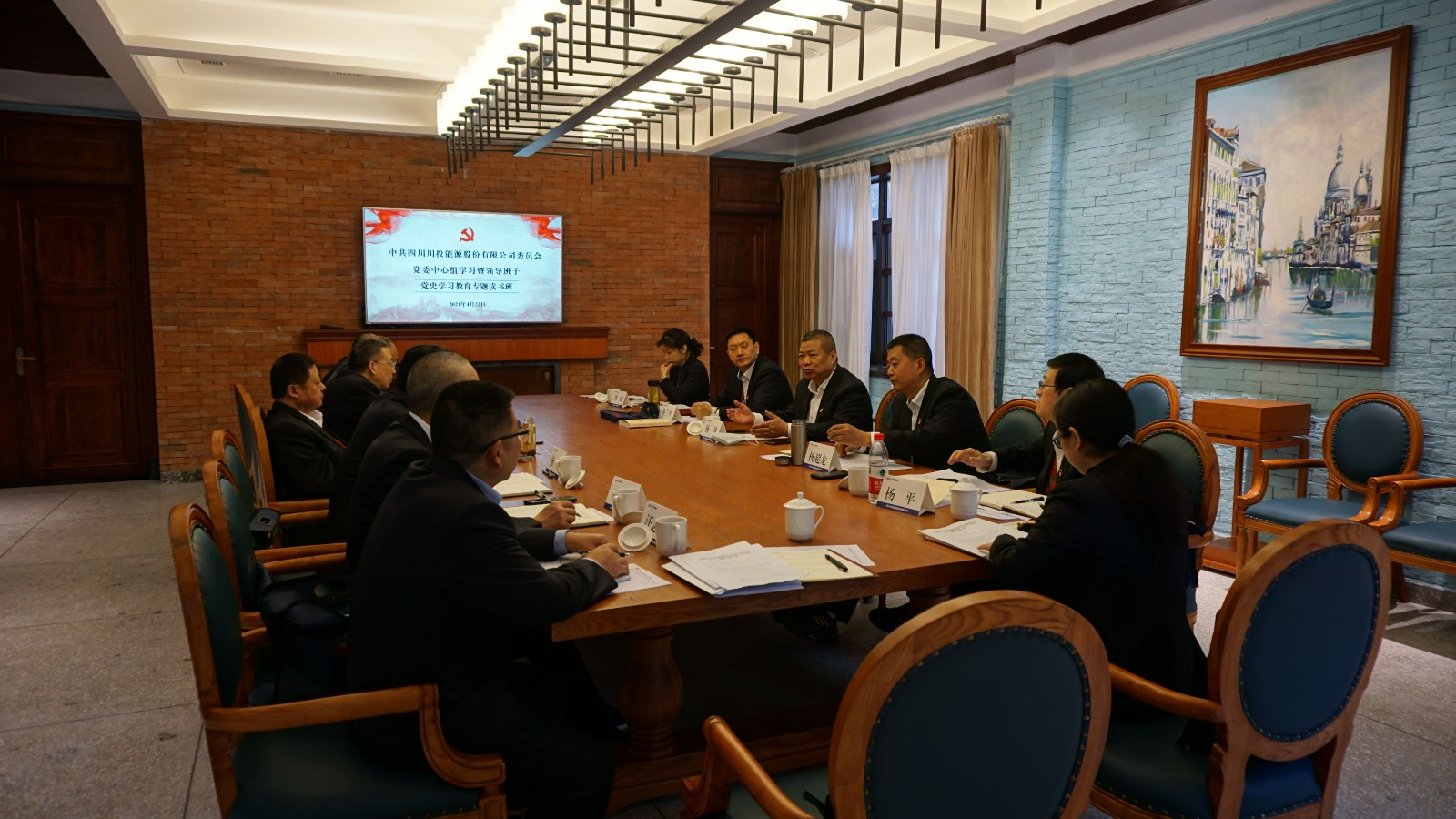 這(zhe)一(yi)次(ci),黨(dang)委(wei)中(zhong)心(xin)組(zu)學(xue)習(xi)暨(ji)黨(dang)員(yuan)領(ling)導(dao)班(ban)子(zi)成(cheng)員(yuan)黨(dang)史(shi)學(xue)習(xi)教(jiao)育(yu)專(zhuan)題(ti)讀(du)書(shu)班(ban),是(shi)在(zai)川(chuan)投(tou)嘉(jia)陽(yang)黨(dang)性(xing)教(jiao)育(yu)基(ji)地(di)會(hui)議(yi)室(shi)舉(ju)辦(ban)的(de)。除(chu)了(le)地(di)點(dian)的(de)不(bu)同(tong),形(xing)式(shi)上(shang)也(ye)進(jin)行(xing)了(le)創(chuang)新(xin)。“這一次,我們通過采用以領導班子成員先學一步、深學一層的生動形式,深入貫徹落實習近平總書記在黨史學習教育動員大會上的重要講話精神,帶頭引導公司廣大黨員幹部學黨史、悟思想、辦實事、開新局,推動黨史學習教育不斷往深裏走、往實裏走。”川投能源黨委副書記、工會主席楊超龍楊超龍說到。