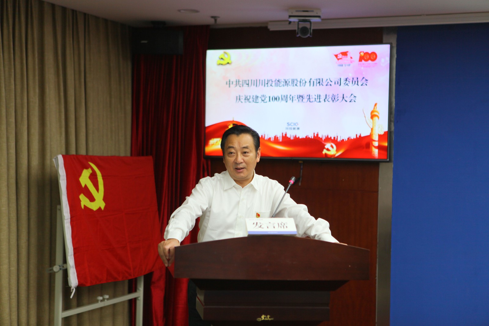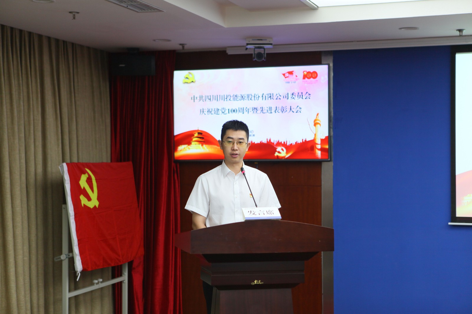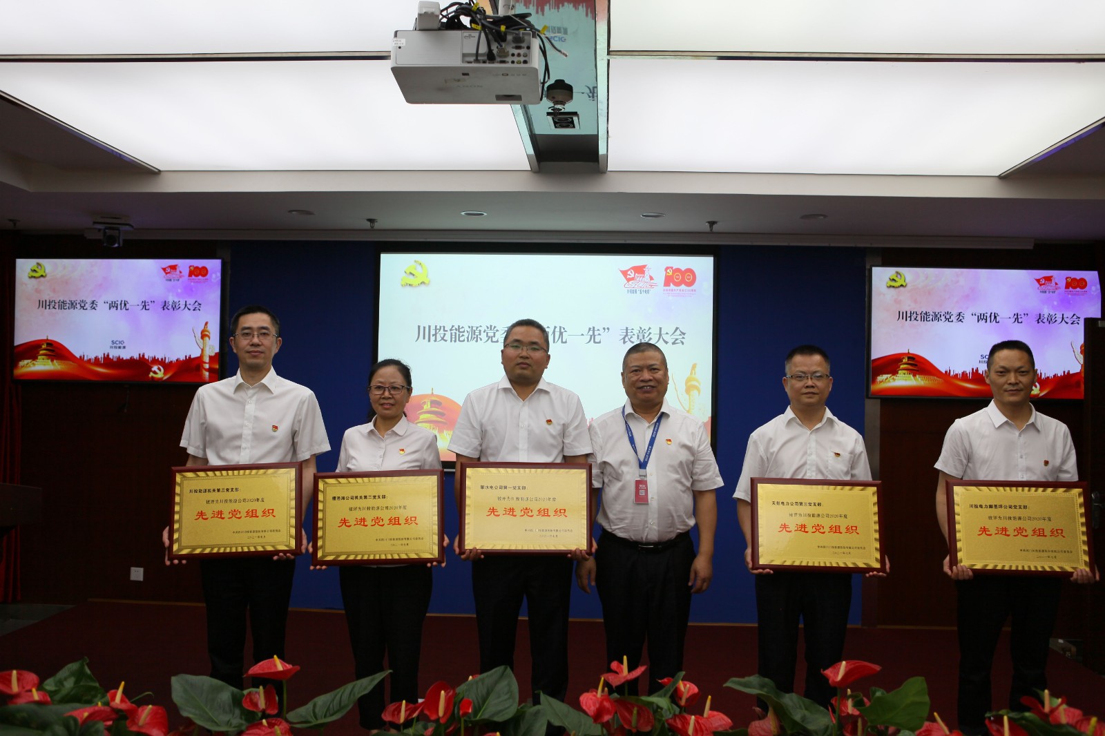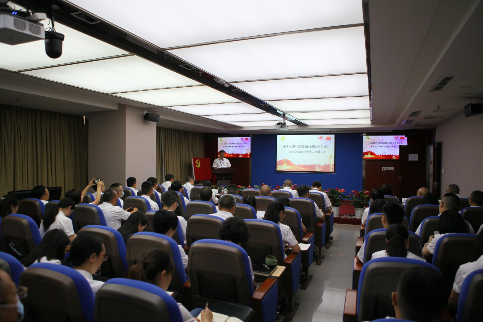 6月28日上午,川投能源黨委召開“奮進新征程 永遠跟黨走”慶祝建黨100周年暨先進表彰大會,以一係列簡樸而莊重的儀式,砥礪川投能源人的初心使命,激越起賡續發展的壯懷豪情。會議由黨委副書記、工會主席楊超龍主持,以視頻方式連線各單位分會場,共計200餘名黨員職工參會。